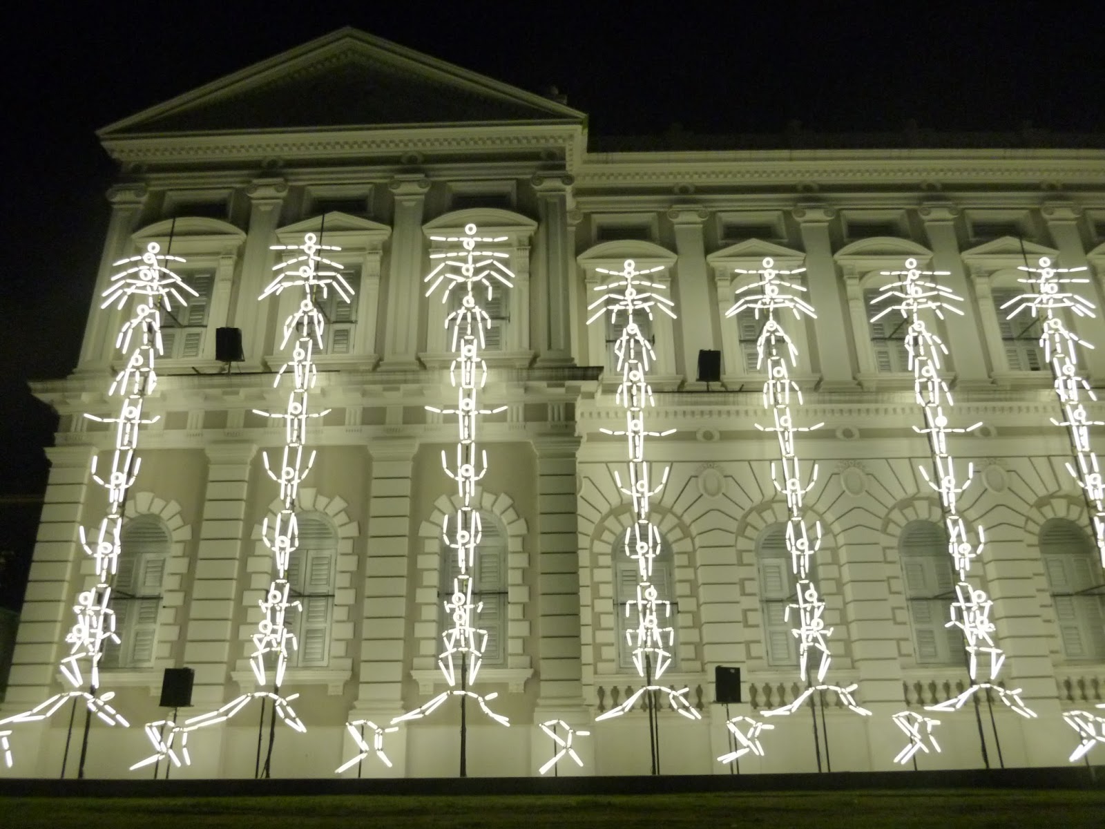 KEYFRAMES by Groupe Laps (from France) will narrate a series of urban micro-stories through the use of part animation and part moving sculpture. Catch the LED-lights figures and their routine of movements imbue energy and excitement to the building of the National Museum of Singapore.